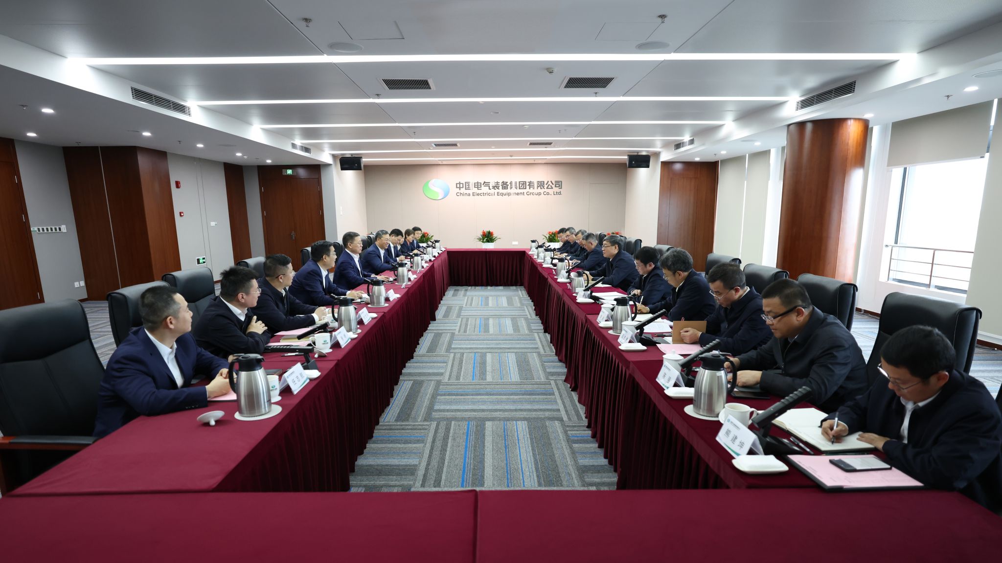 11月11日,中国电气装备党委书记、董事长李洪凤,党委副书记、总经理闫华锋在集团公司总部与来访的东方电气党组书记、董事长罗乾宜举行会谈,双方就进一步深化战略合作进行座谈交流。东方电气党组成员、副总经理李建华,集团公司党委常委、副总经理张旭升参加会谈。