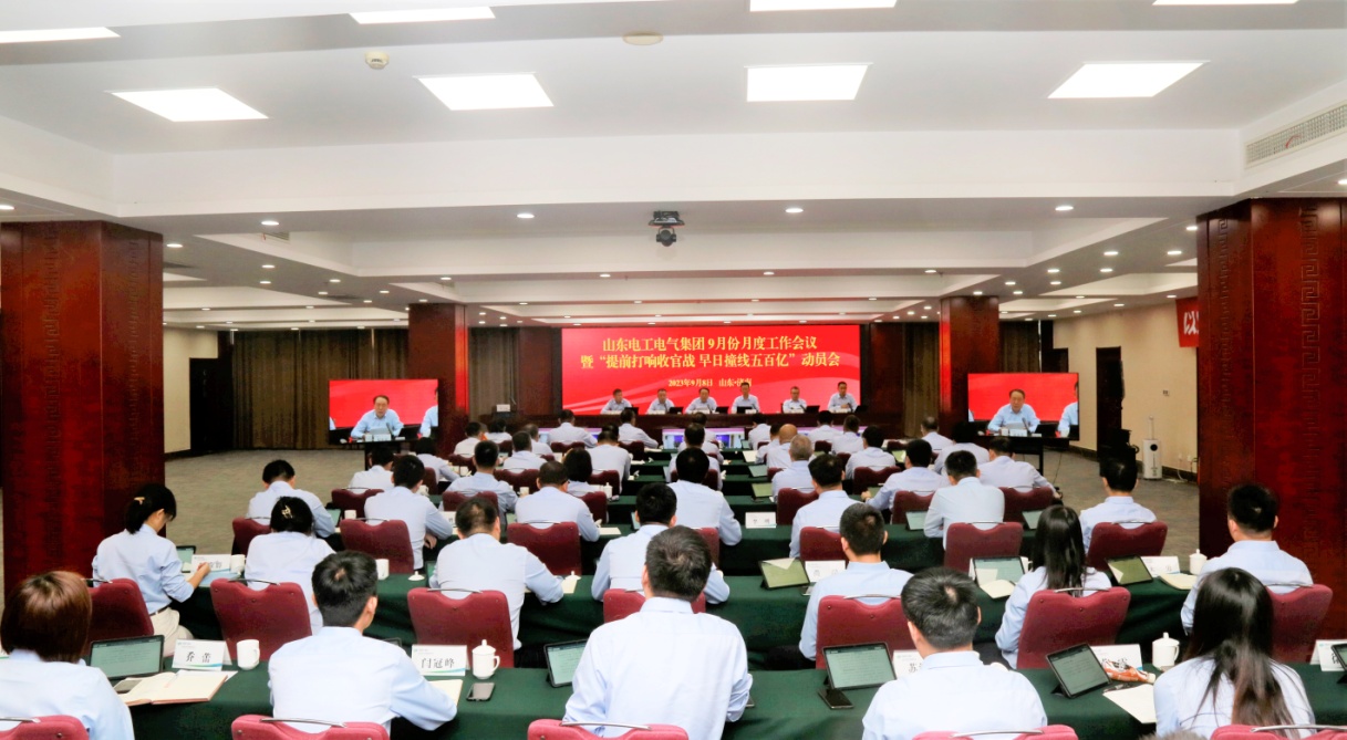 9月8日,山东电工电气召开9月份月度工作会议暨“提前打响收官战 早日撞线五百亿”动员会,传达中国电气装备改革深化提升行动动员部署会精神,发布山东电工电气年度目标和挑战目标。党委书记、董事长赵永志出席会议并讲话,向3家单位授旗。党委副书记、总经理季侃主持会议并提出工作要求,在家领导班子成员参加。
