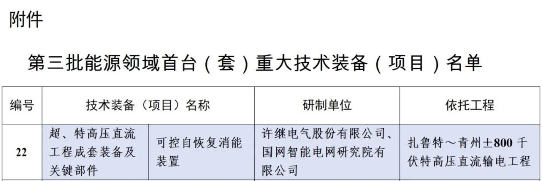 近日,国家能源局正式公示《2023年度能源领域首台(套)重大技术装备(项目)名单》,许继电气牵头研发的“可控自恢复消能装置”荣列其中,该设备已在扎鲁特-青州±800千伏特高压直流输电工程成功应用,填补了国际空白。