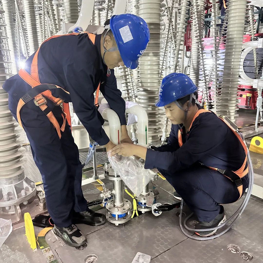 2023年10月26日,许继电气启动对如东工程供货设备的“全面体检”,公司精心筹备,派遣核心人员、骨干力量参与检修,严把现场作业风险管控,强化标准化、规范化检修作业方式,稳步推进各项工作。10月31日和11月1日,检修团队分别陆续完成海上站与陆上站全部检修任务。11月4日凌晨,换流阀设备一次复电解锁成功,比计划工期提前5天完成任务。换流站年度检修就是一次全面“体检问诊”,关系着江苏电力系统的可靠运行以及万千百姓能否稳定用电,我们一定要精益求精,不放过一丝隐患。这是检修团队项目经理在现场最常说的话。