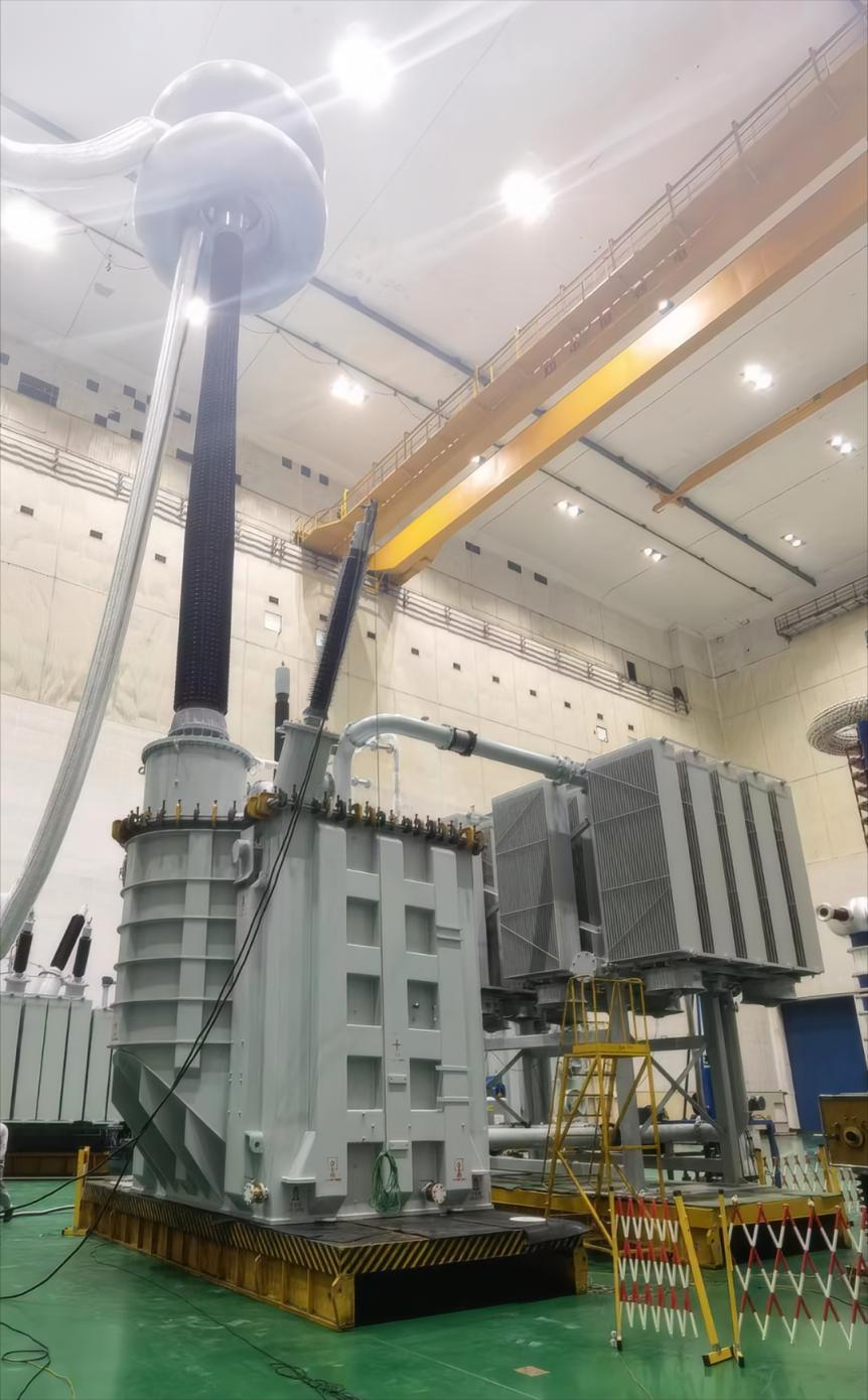 该产品是中国西电所属西电西变为华电福建周宁抽水蓄能有限公司研制的抽水蓄能电站用电力变压器,产品结构合理、设计先进,铁心为三相五柱式,高压绕组为纠结连续式,低压绕组为螺旋式。针对频繁启停的特殊运行工况和要求,对操作过电压耐受能力、VFTO耐受能力、励磁涌流耐受能力及抗短路能力开展了深入研究和校核,具有结构紧凑、温升低、局放小、噪声低、过励磁和过负荷能力强等特点。