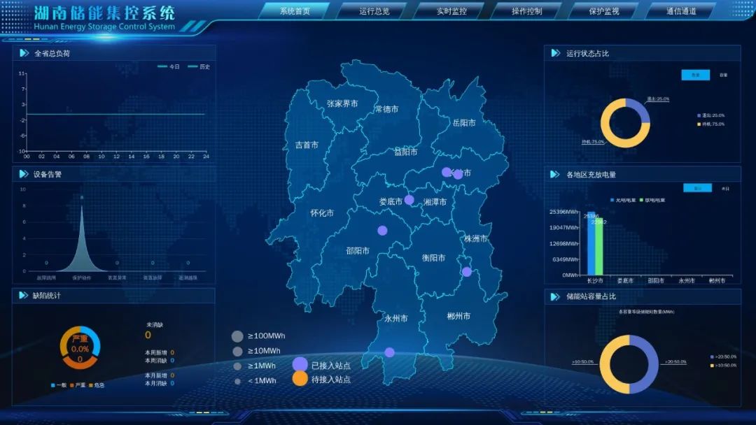 截至目前,湖南省储能集控中心I、II区已接入湖南省长沙、邵阳等地市共7座储能站的全量数据接入与运行监控。目前,湖南省综合能源公司正持续推动社会面储能站的接入,储能集控中心将有超过50余座社会面储能站完成接入,总装机容量超过吉瓦级别。