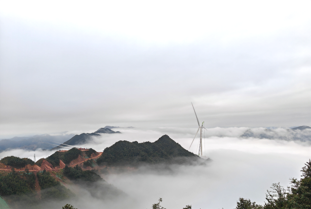 由西电新能源承建的广西桐棉50MW风电项目(二期)位于广西壮族自治区崇左市宁明县东南部十万大山自然保护区边缘的宝鸡岭浦龙山上,装机容量50 MW,本期建设8台6.25MW风力发电机组,场区总用地面积约800亩,包含一座110kV升压站、35kV间隔及8.99公里35KV集电线路。项目全部建成后,每年可为国家电网提供清洁电能14364万千瓦时,每年节约标准煤约4.36万吨,每年减少二氧化碳排放量约8720吨、二氧化硫排放量约697.6吨。每年还可减少大量的灰渣及烟尘排放,节约用水,并减少相应的废水排放,助力当地绿色发展。项目团队克服雨雾天气施工困难,注重当地生态植被保护,就可能出现的台风天气设置应急预案,以充分保障项目施工安全为准则推动项目建设。