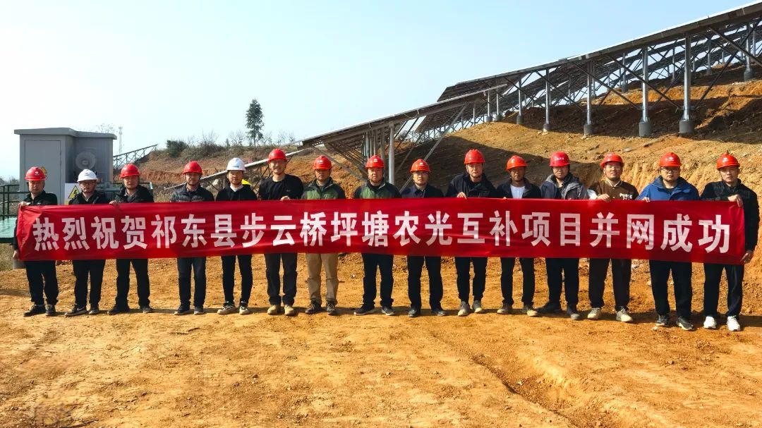 由西电新能源承建的祁东县100MW农光互补项目位于湖南省衡阳市祁东县,装机容量100MW。光伏场区共设置40个光伏发电单元,采用660Wp、665Wp单晶双面双玻光伏组件。项目通电后每年可为电网提供清洁电能140782.18MWh,节约标准煤约45894.99吨。项目团队有效组织人力物力,全力做好现场管理,成立党员突击队,充分发挥党员带头作用,严把工程质量和进度,成为国家能源集团湖南电力新能源有限公司祁东区域率先并网标段,也成为西电新能源历年来并网发电工期最短的项目。
