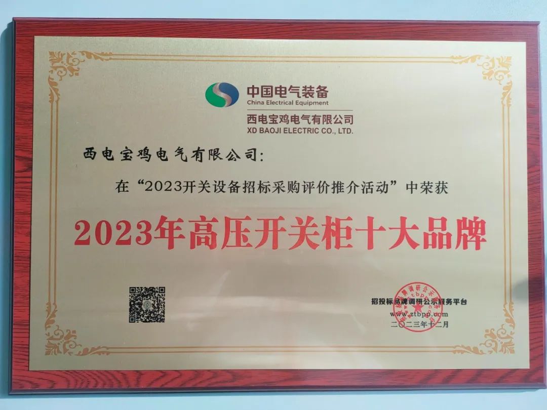 近日,中国西电集团所属西电宝鸡电气在招投标品牌调研公示服务平台主办的“2023开关设备招标采购评价推介”活动中,获得“2023年高压开关柜十大品牌”、“2023年真空断路器十大品牌”殊荣。本次活动受到招投标各方的广泛关注,吸引全国285家业内知名企业参与,西电宝鸡电气高压开关柜、真空断路器产品凭借先进的生产工艺、稳定的产品质量、优质的系统服务,赢得了广大用户的广泛好评,充分彰显了西电宝鸡电气在电力成套开关设备及核心元器件行业内卓越的实力与领先地位,赢得业内广泛关注与好评。