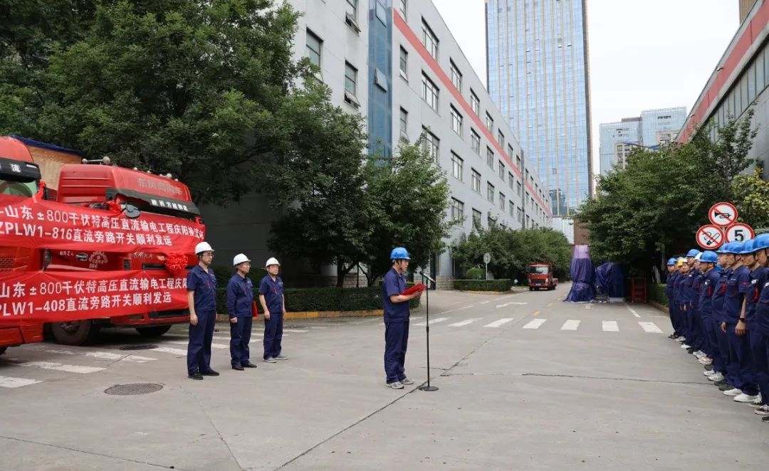 7月22日下午,西开有限隆重举行“西电红”品牌工程项目陇东-山东±800kV特高压直流输电工程庆阳换流站ZPLW1-408/816直流旁路开关发运仪式。