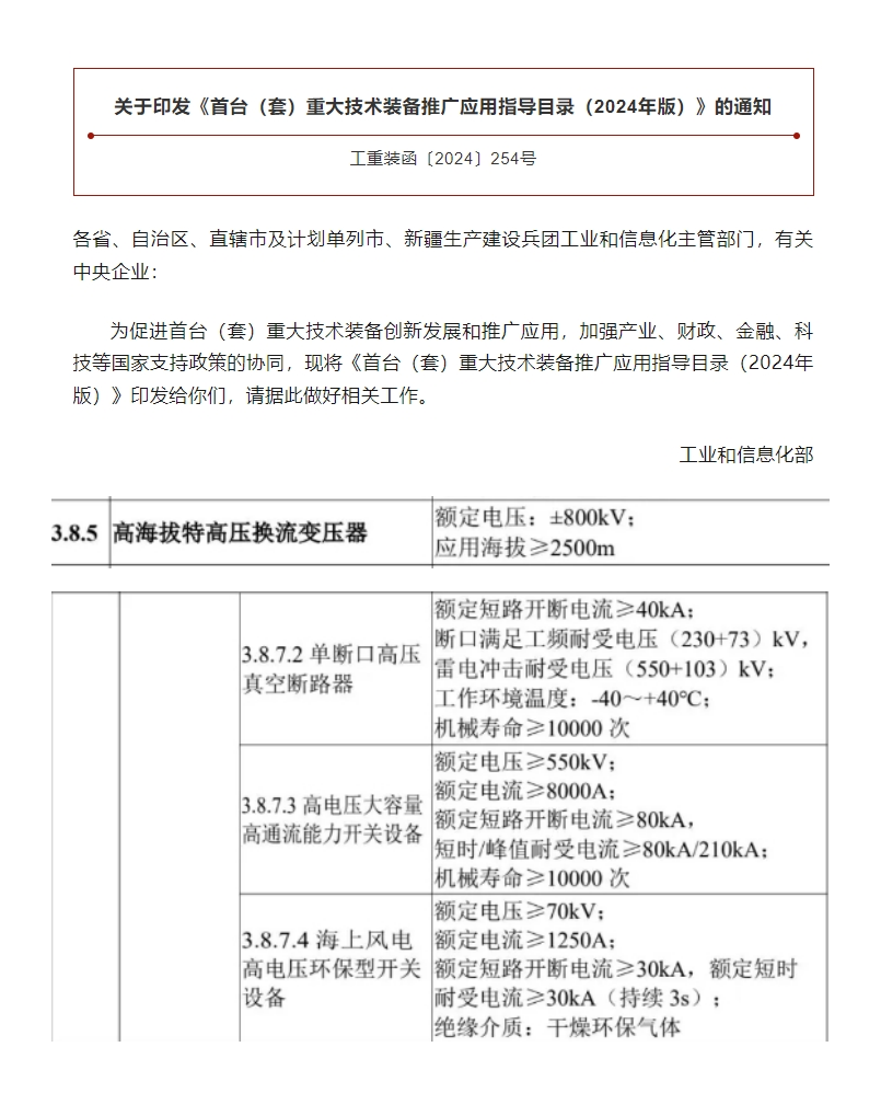 近日,国家工业和信息化部正式发布了《首台(套)重大技术装备推广应用指导目录(2024年版)》,中国西电凭借其卓越的研发能力和技术实力,四个重大技术装备产品成功入选,再次彰显了中国西电在电气装备制造领域的领先地位和创新能力。