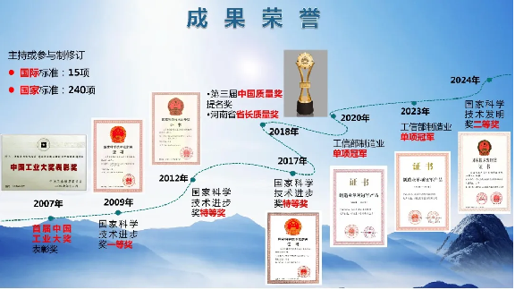 成果荣誉:主持或参与了15项国际标准、240项国家标准制修订;在特高压领域,取得国家及省部级科技成果83项。其中,国家科学技术进步特等奖2项、一等奖1项,国家科学技术发明奖二等奖1项;先后获得第三届中国质量奖提名奖、中国质量协会质量技术奖等20余项质量荣誉;高压直流输电换流阀获评工信部制造业单项冠军产品。
