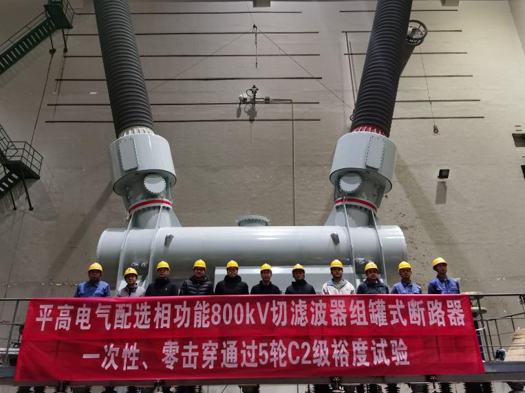 近日,由河南平高电气股份有限公司自主研发的配选相装置的800kV切滤波器组罐式断路器在西安高压电器研究院一次性顺利通过5轮C2级裕度试验和选相合闸试验验证,这标志着配选相装置的800千伏滤波器组罐式断路器研制成功,实现了首轮关合电流由10kA到20kA的重大突破,是世界首家一次性、零击穿下通过该试验的生产厂家。