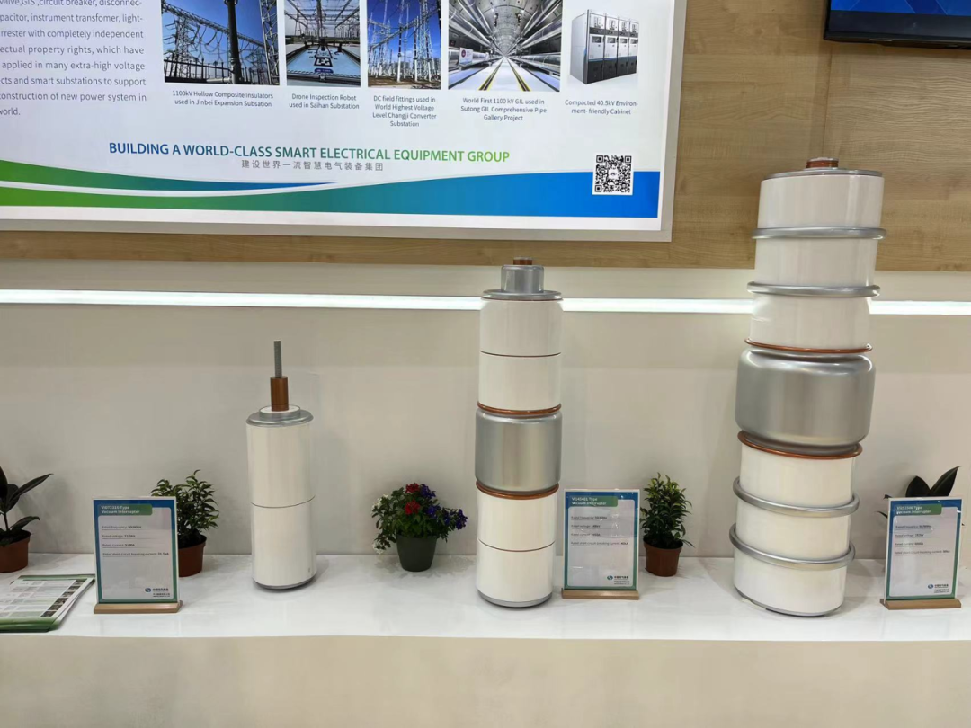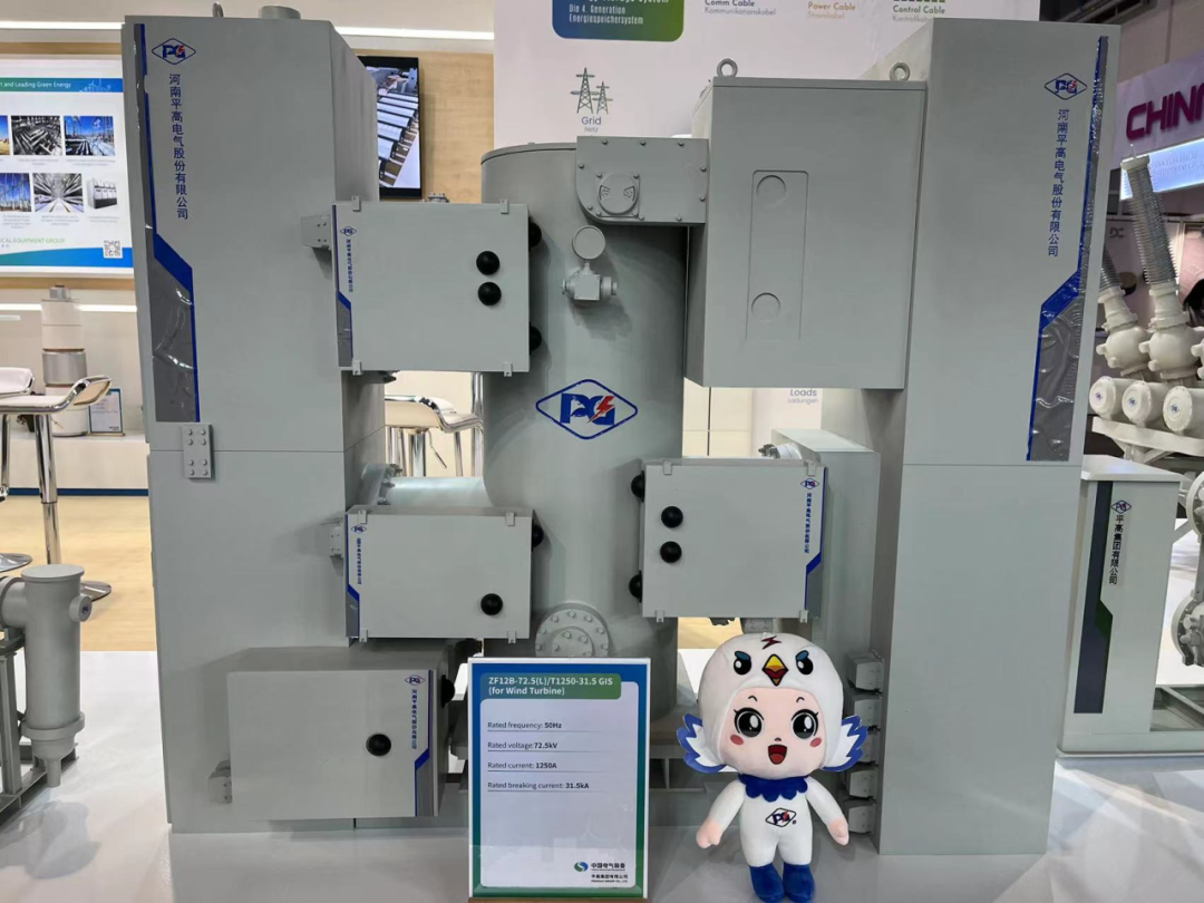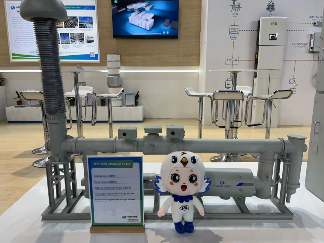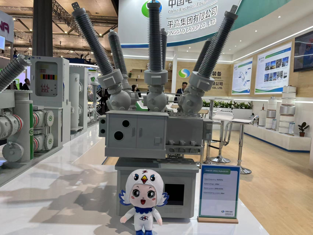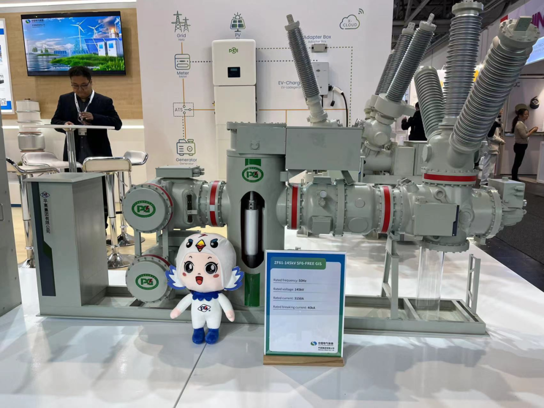 为积极参与全球新型电力系统建设,推动全球电网绿色发展,平高集团聚焦“绿色环保,智能制造”主题,重点展出了真空灭弧室、72.5千伏GIS(风机用)、145千伏环保GIS产品、145千伏SF6 HGIS产品、±550千伏直流GIS、光储充一体化设备及配套商业场景模型,充分展现了平高集团科技创新、智能制造实力及支持全球新型电力系统建设和绿色发展的能力。