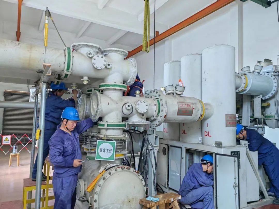 重点项目:浙江兰江站是运检服务/电力检修首次自主组织实施的百万伏断路器现场检修项目,面对工期紧、任务重、环境复杂等困难,项目团队与运检服务/电力检修技术部门联合成立专项小组,定制罐式断路器便携充气式防尘棚,满足清洁度要求,合理筹划物资供货计划,确保零部件按期到场,协同兄弟单位全力以赴保障项目实施。该站三相耐压及局放试验一次性顺利通过,赢得了客户的点赞好评。