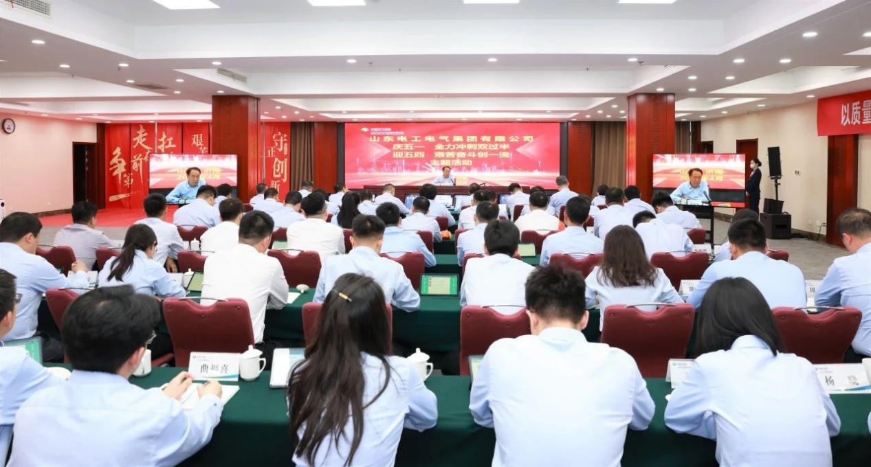 4月28日,山东电工电气举办“庆五一、全力冲刺双过半 迎五四、艰苦奋斗创一流”主题活动,旨在激发广大干部员工和团员青年昂扬斗志,践行“四利”工作标准,艰苦奋斗、保持过硬作风,激发“三大内生动力”,全力推进“六突破一攻坚”重点任务。党委书记、董事长赵永志出席,讲授《持续发扬雷锋精神 坚持“四利”工作标准 为开启集团高质量发展新征程而团结奋斗》主题团课,代表山东电工电气党委向广大员工和团员青年致以诚挚的节日问候,为山东电工电气五四先进代表颁奖,并为七个板块青年突击队代表授旗。党委委员、总会计师陆飞主持活动。