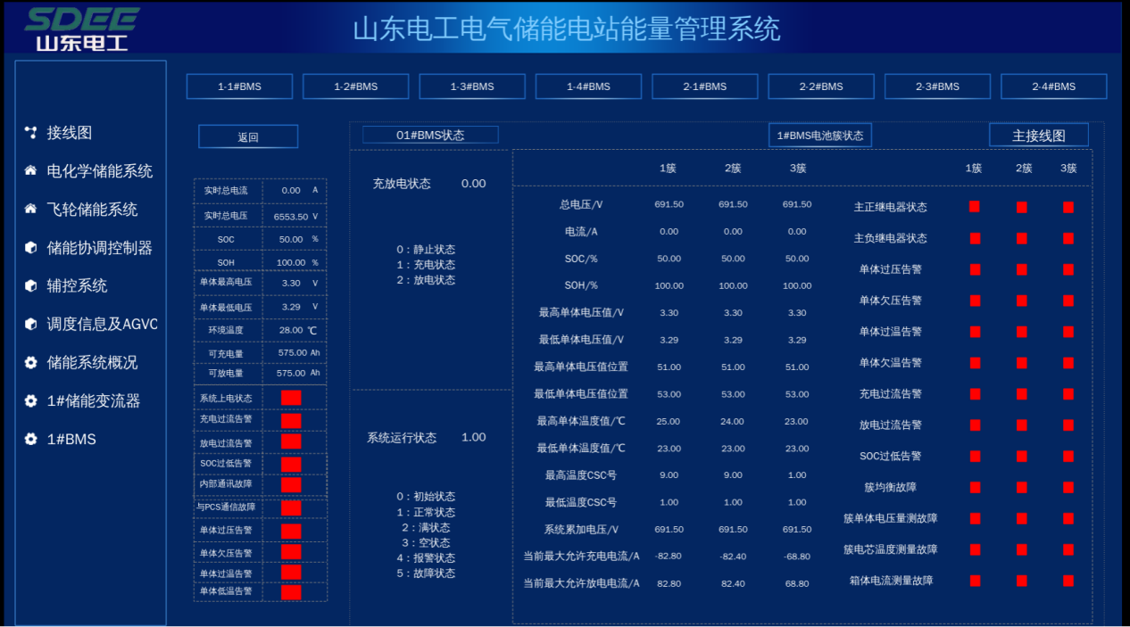 储能电站能量管理系统(EMS)由山东电工电气所属数字科技自主研制、升级,通过国家级新产品鉴定,达到国际先进水平。该产品采用面向服务的软件体系架构,分为实时监控、诊断预警、全景分析、高级控制等功能模块,具备数据精准、安全可靠、标准开放、操作简单等优势,已在德州临邑、东营学堂等项目进行示范应用。